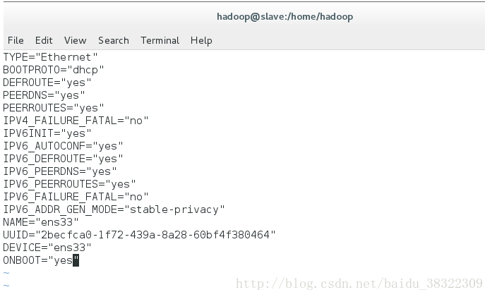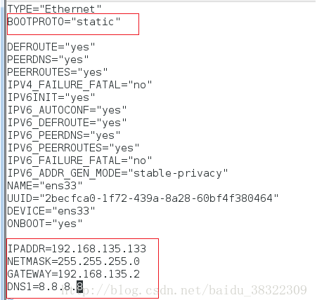 vi /etc/sysconfig/network-scripts/ifcfg-ens33 |