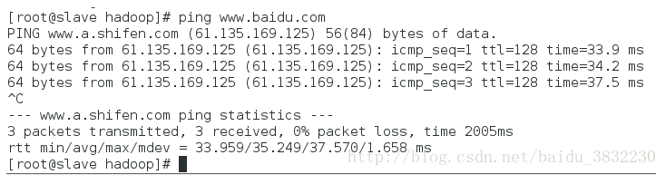然后‘ping'一下,真实的网址:‘www.baidu.com',如下则配置成功,不需要第7步。