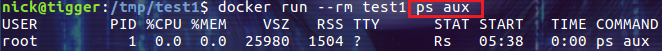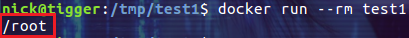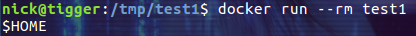 $ docker run -- rm test1 |