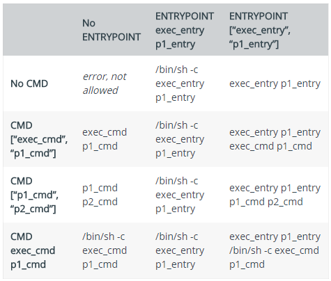 • 如果 entrypoint 使用了 exec 模式,cmd 指定的内容被追加为 entrypoint 指定命令的参数。
