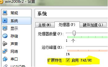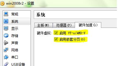 然后在virtualbox的虚拟机设置里了,硬件加速上全点上
