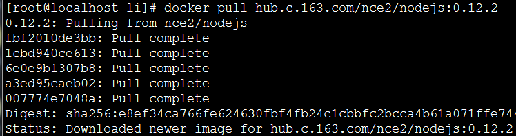 docker pull hub.c.163.com /nce2/nodejs :0.12.2 |