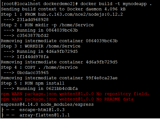from是构建镜像的基础源镜像,hub.c.163.com/nce2/nodejs:0.12.2 这个是镜像的名称,也就是我们一开始从国内服务器上拉下来的那个image。如果本地没有docker 会自己pull镜像。