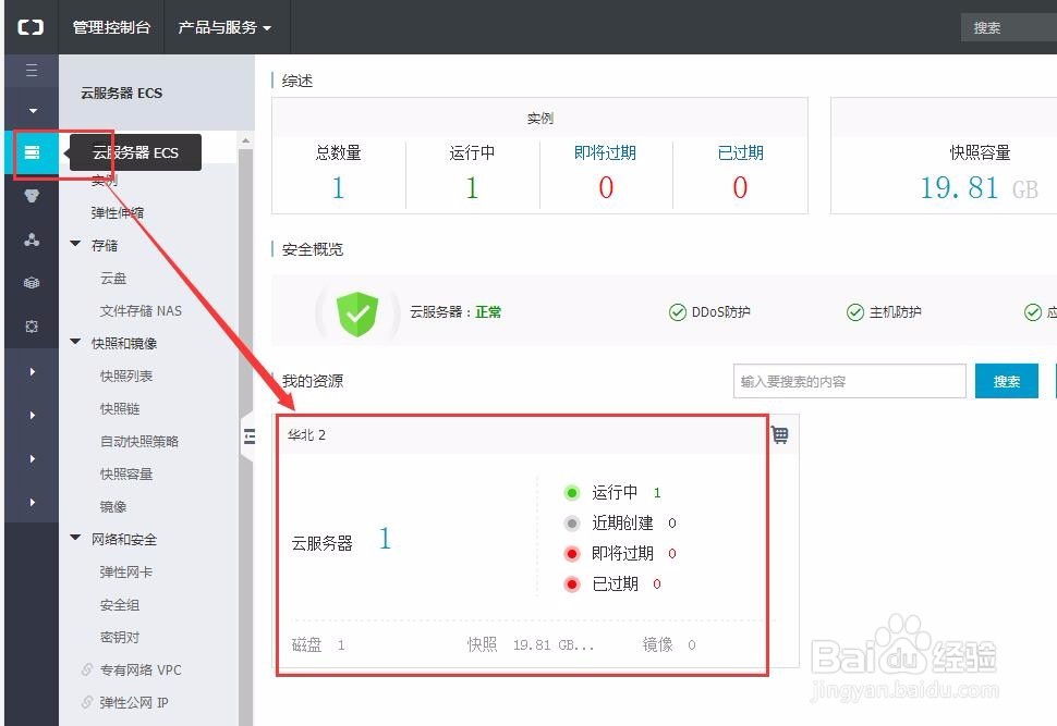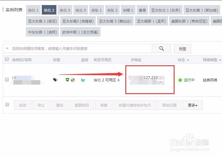 如果不清楚云服务器的IP是多少的话,可以返回控制台进入云服务器界面。然后鼠标移动到服务器上点击一下进入云服务器具体的配置页面,在这个页面上就可以看到云服务器分配的公网IP了。