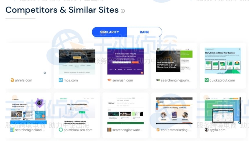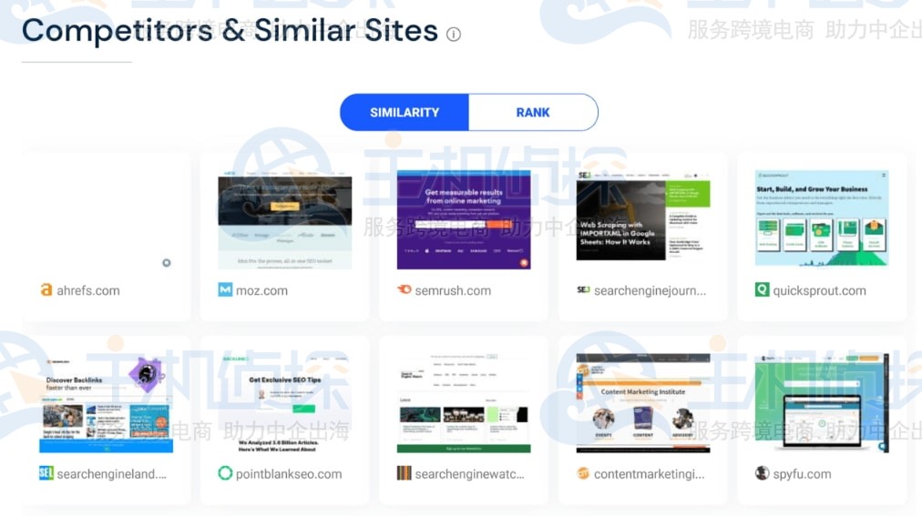 此报告是找出竞争对手的快速方法。例如如果本例中的 SimilarWeb 报告,会得到 10 个竞争网站。