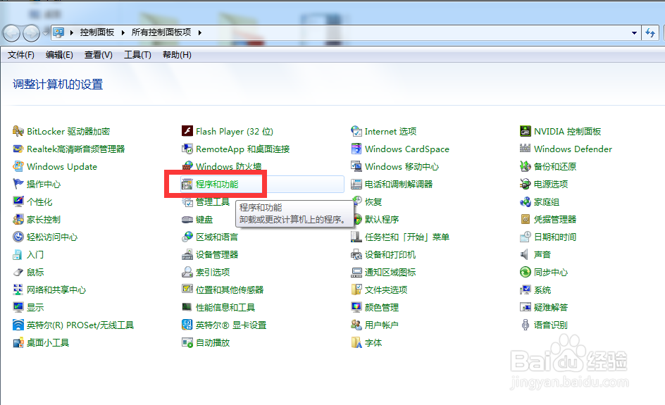 点击控制面板中的程度和功能,打开windows的程序和功能界面。
