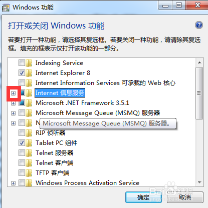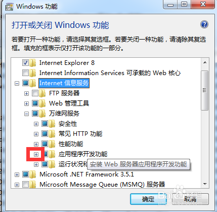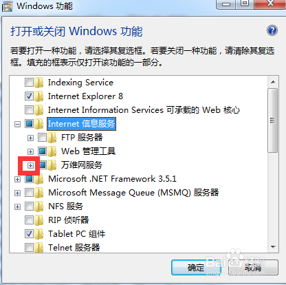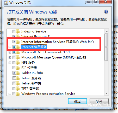 选中internet infomation services 可承载的web核心和internet信息服务