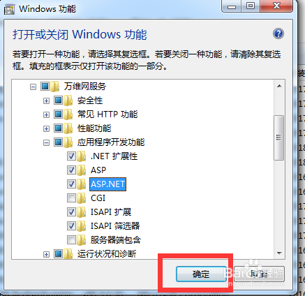 确保以上几项都选中了之后,点击确定,windows会开发安装网站所需的运行环境,这个需要几分钟的时间,请耐心等待。