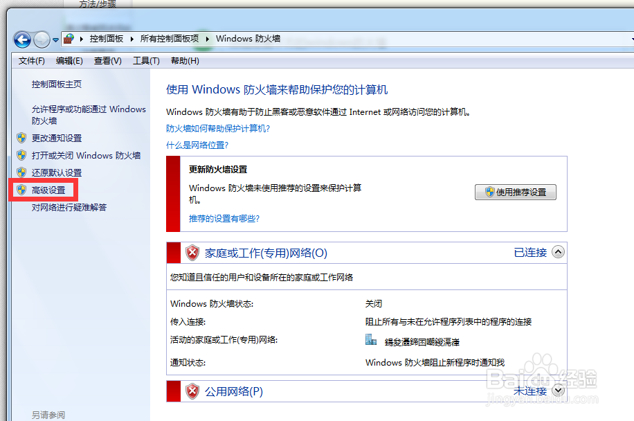 点击左侧下方的windows防火墙