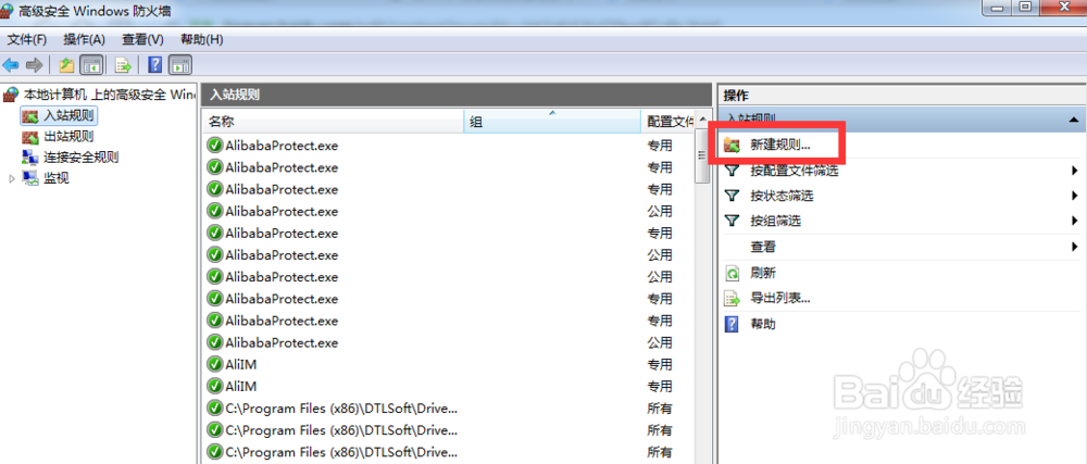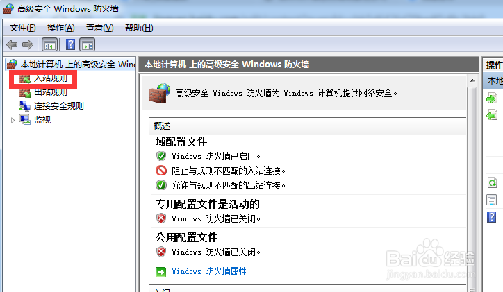在高级设置里点击左侧的入站规则
