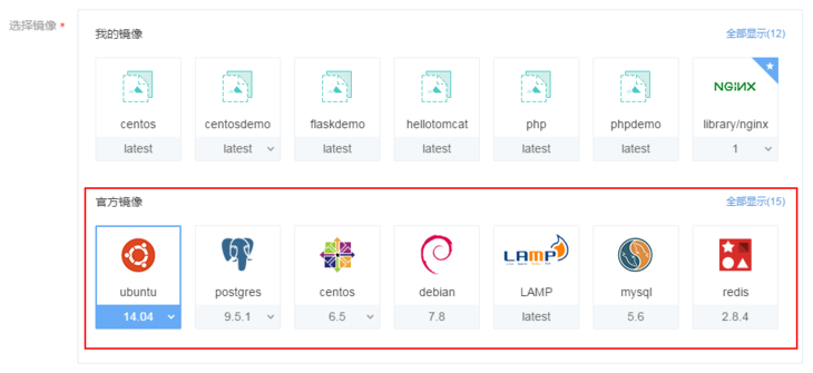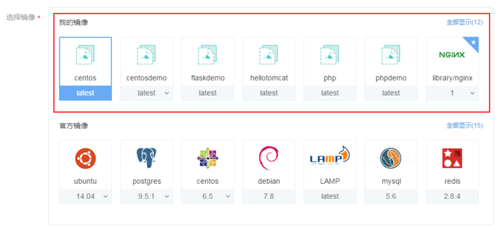 可选择的镜像分为「我的镜像」和「官方镜像」。