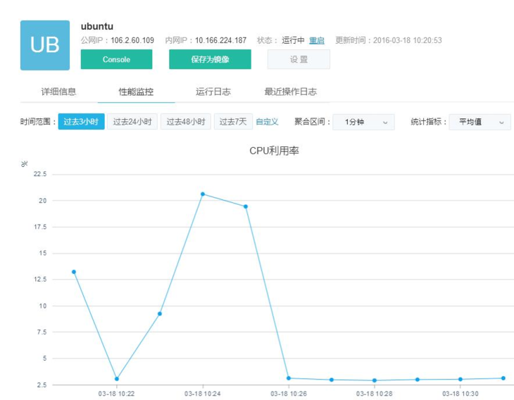 点击容器列表中的容器名称,可进入容器详情,查看容器的详细信息。包含容器的基本信息、创建自定义镜像、性能监控、最近日志与 Console 等。具体如下图所示: