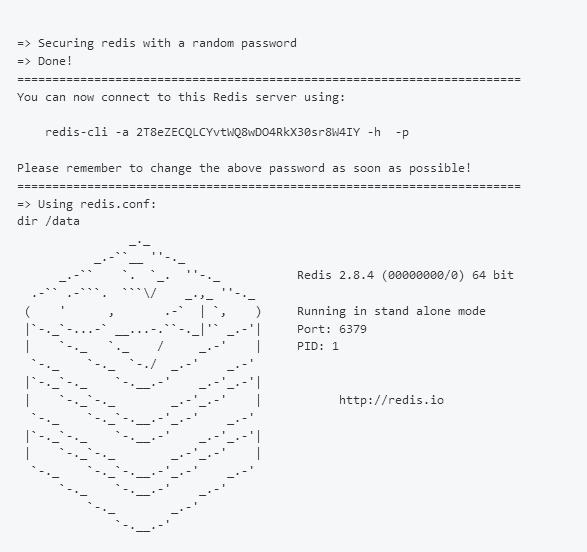 运行日志主要显示容器最近的运行情况,下图为 Redis 镜像的运行日志示例: