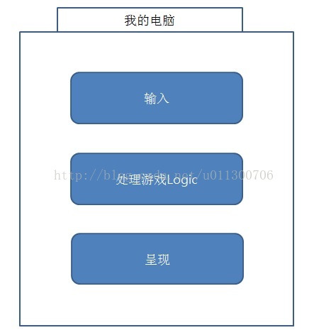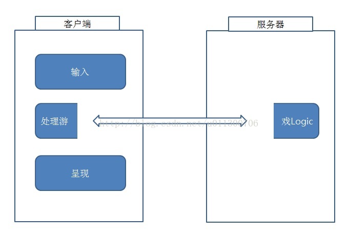 但如果要进行在线游戏则需要首先下载并安装‘游戏客户端’,但只有客户端也不能直接进行游戏,电脑首先要联网,之后还要连接到游戏服务器。 ‘在线游戏’不会只有一人进行游戏,它需要与连接到网络的其他玩家一同冒险一同竞争,所以我们称其为多人游戏。但如果要与他人进行游戏则在中间需要有一个管理游戏进程的程序,这便是‘游戏服务器’。 如果在Package游戏当中是由一台电脑处理输入,处理游戏Logic,呈现功能,那么在在线游戏当中其功能被分割为服务器和客户端。游戏客户端负责输入和呈现,游戏服务器负责处理游戏Logic的一部分功能。这也是没有连接游戏服务器便无法进行游戏的原因。 即,在线游戏当中游戏服务器所发挥的作用就如同我们的大脑,虽在表面上看不出来,但如果没有服务器就等于是死。