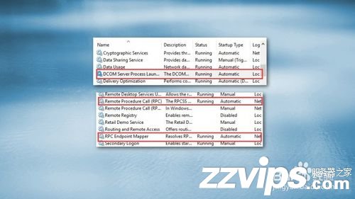在“服务”窗口中,找到DCOM Server Process Launcher,远程过程调用(RPC)和RPC Endpoint Mapper。