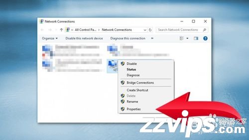 在“网络连接”窗口中,右键单击您使用的网络连接。