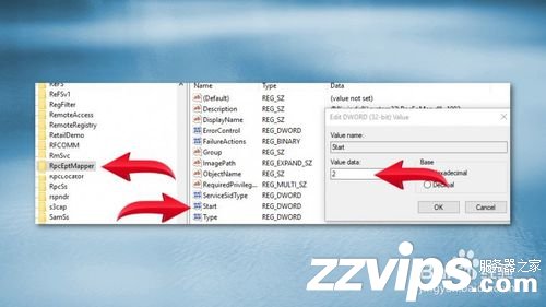 转到HKEY_LOCAL_MACHINE \\\\ SYSTEM \\\\ CurrentControlSet \\\\ services \\\\ RpcEptMapper并检查是否有任何项目不再丢失。如果以前发现的RPC端点映射器设置不正确,请双击“启动注册表项”。将其值数据设置为2。
