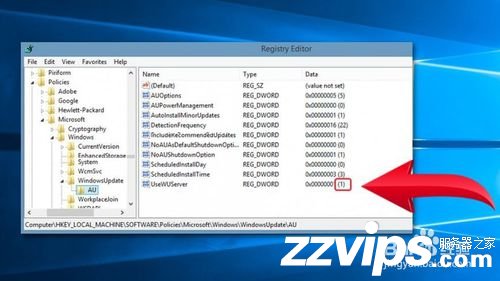 在AU文件夹中找到UseWUServer并将其值数据更改为0。