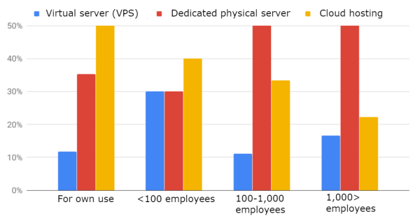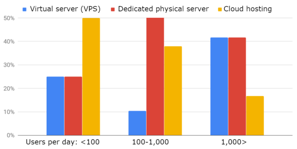 那些具有高访问量的用户,对于使用物理服务器和VPS的需求基本持平(都是40%)。