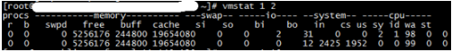 每行会输出一些系统核心指标,这些指标可以让我们更详细的了解系统状态。后面跟的参数1,表示每秒输出一次统计信息,参数2,表示一共输出2次统计信息。表头提示了每一列的含义,这只介绍一些和内存性能调优相关的列: