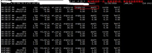 正常情况下avserv应该是小于avwait值的, 如果avserv的值与avwait很接近,表示几乎没有I/O等待,磁盘性能很好;如果avwait的值远高于avserv的值,则表示I/O队列等待太长,系统上运行的应用程序将变慢,磁盘IO为系统瓶颈。