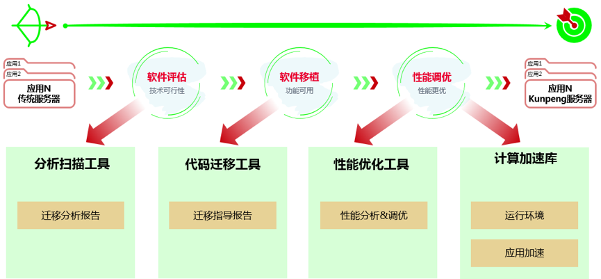 为应对上述问题,张汝涛表示,华为鲲鹏平台提供了完整的工具链帮助开发者提高应用迁移或者调用的效率,比如: