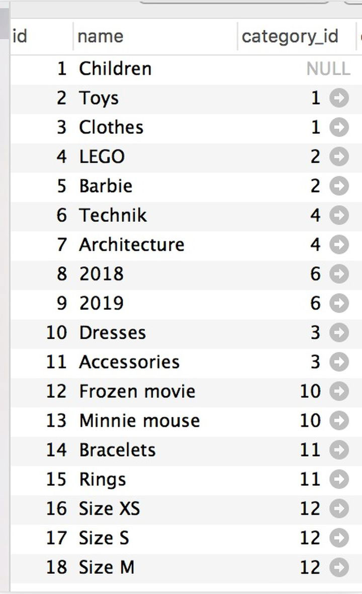 就是这样!我们拥有无限级别的子类别 – 无论是在数据库还是关联关系或是视图中