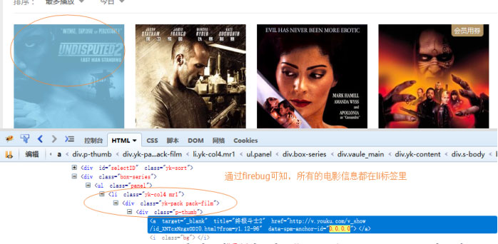 则先要知道电影所在的节点的结构,我们使用firebug查看。