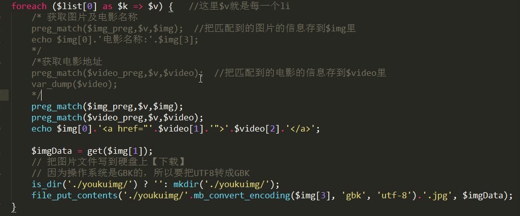 preg_match($video_preg,$v,$video); //把匹配到的电影的信息存到$video里