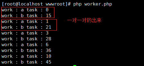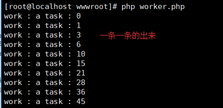 - echo "work : {$this->worker->getName()} task : {$total} \\n";