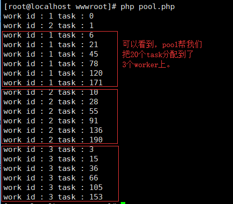 worker还有一个好处就是可以重用worker中的对象和方法。我们可以在worker中创建一个连接数据库对象,方便各task调用。