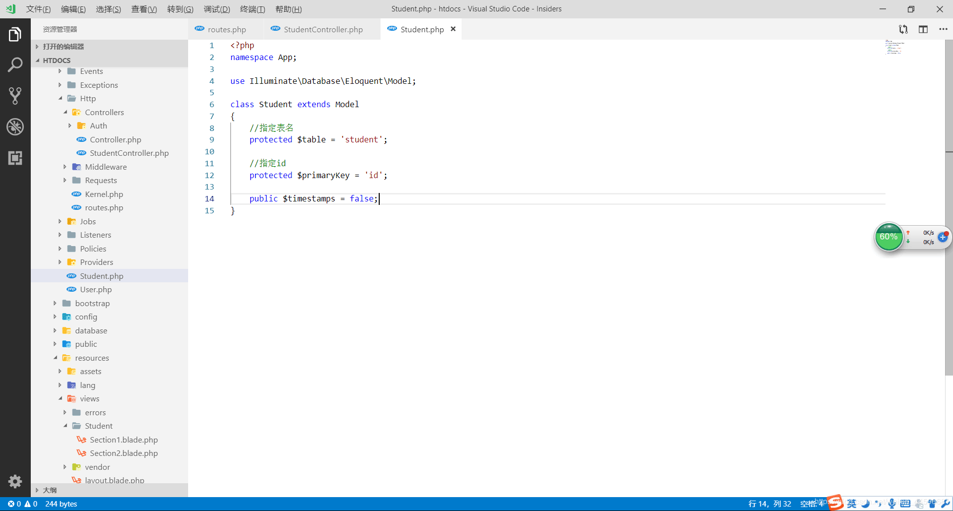 - $student->save();