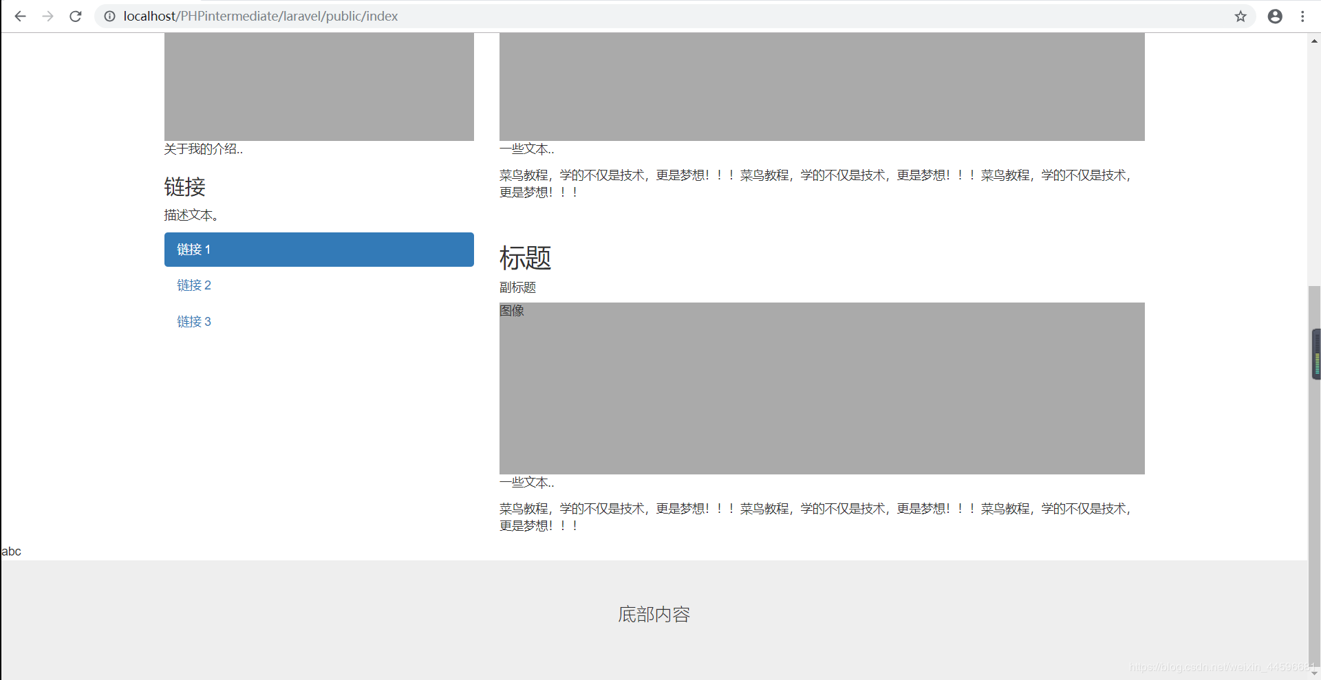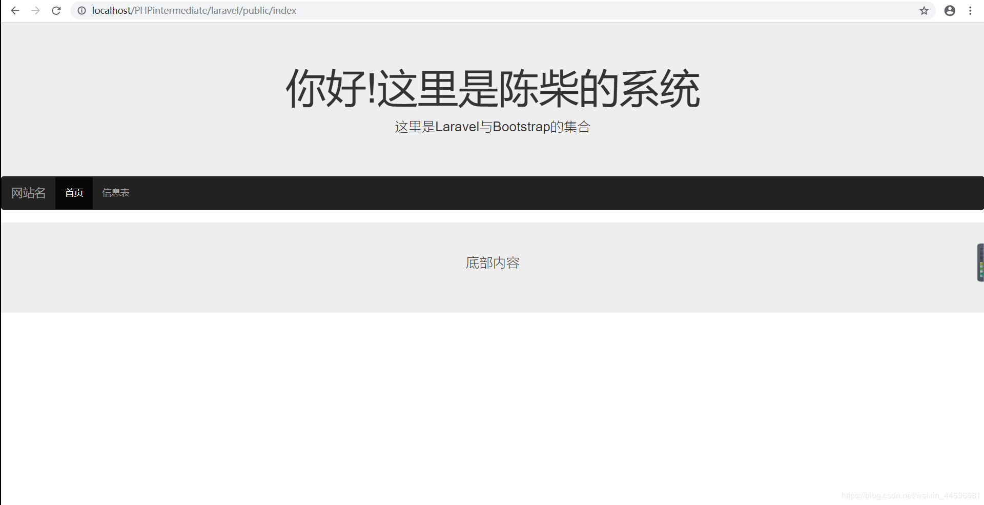 (这里有个点值得注意,因为我在<title></title>里输入了@yield(‘title'),然后在,Bstp下又给他赋了个值,叫首页,所以标题就是首页)