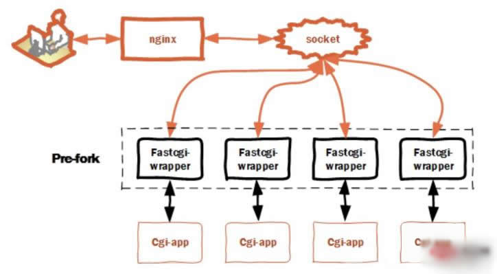 即:nginx -> fastcgi -> php-fpm -> fastcgi wrapper -> php解析器