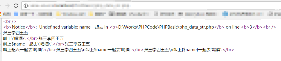 echo '张三李四王五\\n叫上{$name}一起去\\'喝酒\\'.' ;