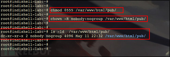 现在,将php shell托管在目录“/var/www/html/pub”中,该目录为smb共享目录“ica”。