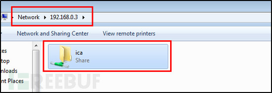 成功托管php shell后,我们使用windows文件浏览器访问smb共享目录“ica”。