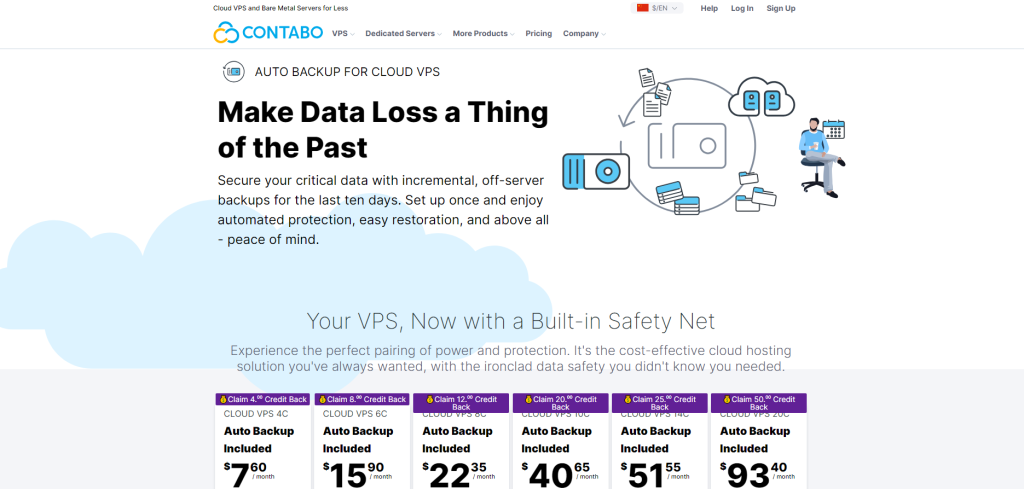 在Contabo,我们深知您的数据至关重要。为此,我们推出了自动备份(Auto Backup)——这一全新附加服务,确保您的云VPS远离数据丢失的风险。