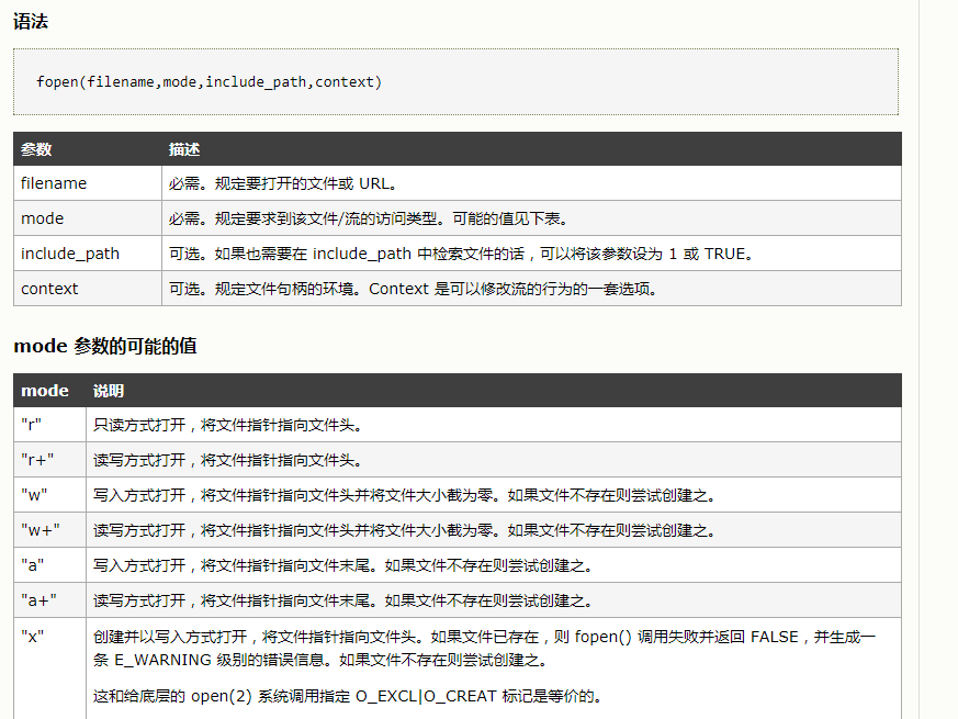 详情参考:http://www.w3school.com.cn/php/func_filesystem_fopen.asp