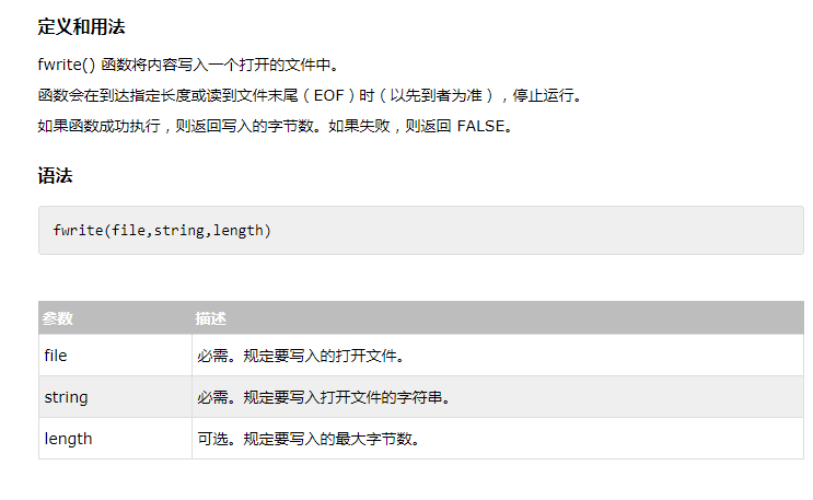 详情参考:https://www.w3cschool.cn/php/func-filesystem-fwrite.html