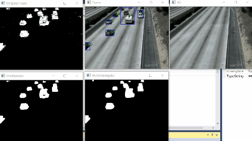 morphologyEx(fgMaskMOG2, fgMaskMOG2, MORPH_CLOSE, getStructuringElement(MORPH_RECT, Size(5, 5))); // fill black holes