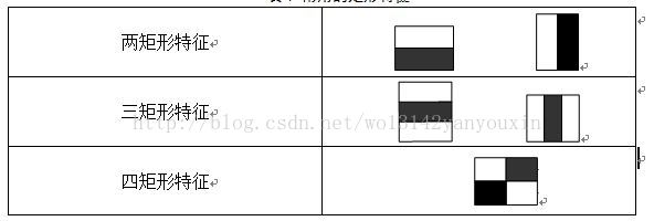 弱学习,强学习:随机猜测一个是或否的问题,将会有50%的正确率。如果一个假设能够稍微地提高猜测正确的概率,那么这个假 设就是弱学习算法,得到这个算法的过程称为弱学习。可以使用半自动化的方法为好几个任务构造弱学习算法,构造过程需要数量巨大的假设集合,这个假设集合是基于某些简单规则的组合和对样本集的性能评估而生成的。如果一个假设能够显著地提高猜测正确的概率,那么这个假设就称为强学习。特征模版:我们将使用简单矩形组合作为我们的特征模板。这类特征模板都是由两个或多个全等的矩形相邻组合而成,特征模板内有白色和黑色两种矩形(定义左上角的为白色,然后依次交错),并将此特征模板的特征值定义为白色矩形像素和减去黑色矩形像素和。最简单的 5 个特征模板: