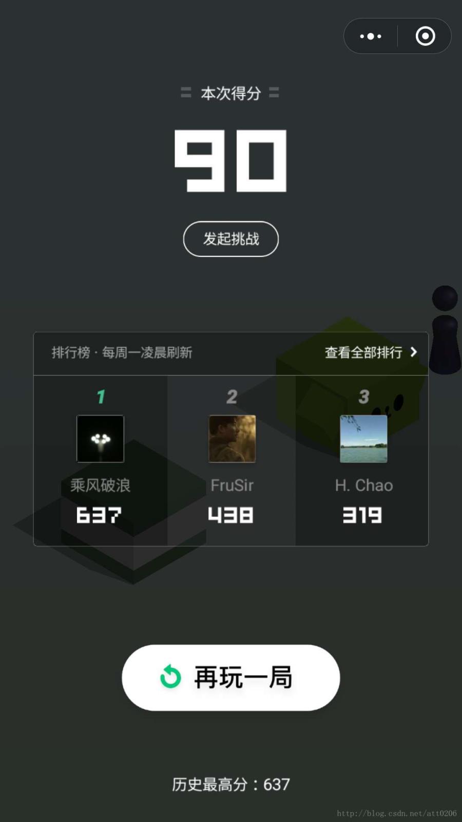 最近微信的跳一跳小程序可谓火了一把,不是因为它本身多好玩,而是有大部分的程序员们加入其中,利用各种领域方法,实现了微信跳一跳的外挂,分数轻松上千或上万。之前也看了基于Python开源的代码,GitHub上现在的star已经快超过1W了,简直不敢想。趁着今天礼拜天,在实验室中也简单的实现了一下微信跳一跳的辅助工具,精度还不够高,我跑了一下才到90,纯属娱乐好玩的,后期再继续改进,主要是依赖C++来实现了一下。
