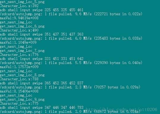然后根据一般下一个要跳的地点始终在小人的左半屏或又半屏部分这一先验知识,来进行查找范围的确定,进行行扫描,扫描到的第一个值为255的即返回当前坐标值;然后通过计算与小人坐标的距离即可得到下一步要跳跃的距离,(注:本代码中在下一个坐标的纵坐标进行+50处理,由于本文中只利用了一个关键点进行测试的,这样做是显然不合理的,接下来可以再利用第二个关键点进行下一个跳跃目标中心点的计算),由于本人手机是1080*1920的所以再得到距离过后乘以一个跳跃系数1.35,(这里不同分辨率的手机系数是不一样的),这样就得到了跳跃按压时间,从而通过system()命令进行调用ADB工具进行与手机通讯实现模拟人的点击。本文仅仅是简单的实现了一下看看效果,如果想跑高分还得进行代码的优化与更改!其次因为每次按压的地点肯定是不一样的,而本文也采用简单的同一位置按压,这样做很容易被腾讯反作弊给查出来的,所以这里可以添加一个随机数从而可以简单的避免位置重复!