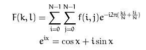 公式中,f是图像在空域的值,F是频域的值。转换的结果是复数,但是不可能通过一个真实图像和一个复杂的图像或通过大小和相位图像去显示这样的一个图像。然而,在整个图像处理算法只对大小图像是感兴趣的,因为这包含了所有我们需要的图像几何结构的信息。