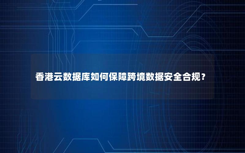 香港云数据库的跨境数据安全合规保障体系