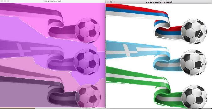 函数watershed实现的分水岭算法是基于标记的分割算法中的一种。在把图像传给函数之前,需要大致勾画标记出图像中的期望进行分割的区域,它们被标记为正指数,所以,每一个区域都会被标记为像素值1、2、3等,表示成为一个或者多个连接组件,这些标记的值可以使用findContours函数和drawContours函数由二进制的掩码检索出来。这些标记就是即将绘制出来的分割区域的“种子”,而没有标记清楚的区域,被置为0,在函数的输出中,每一个标记中的像素被设置为“种子”的值,而区域间的值被设置为-1。