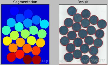 结果如下,有些硬币的边界被分割的很好,也有一些硬币之间的边界分割的不好。