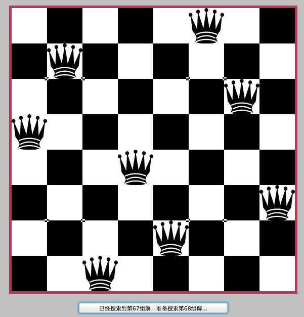 八皇后问题是一个以国际象棋为背景的问题:如何能够在 8×8 的国际象棋棋盘上放置八个皇后,使得任何一个皇后都无法直接吃掉其他的皇后?为了达到此目的,任两个皇后都不能处于同一条横行、纵行或斜线上。