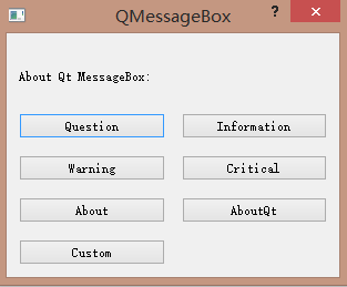 QPushButton *QuestionBtn,*InformationBtn,*WarningBtn,*CriticalBtn,*AboutBtn,*AboutQtBtn,*CustomBtn;